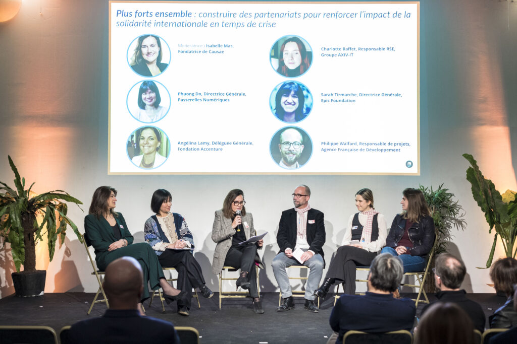 Moderated by Isabelle Mas, the discussion brought together distinguished voices including Philippe Walfard (AFD), Charlotte Raffet (AXIV-IT), Angelina Lamy (Fondation Accenture), Sarah Tirmarche (Epic Foundation), and Phuong Do (Passerelles Numériques). The panel explored how partnerships evolve and adapt during times of crisis—finding creative ways to maintain impact despite political uncertainty, reduced funding, and global economic pressures. From fair-shore digital outsourcing that values human potential to the use of artificial intelligence for inclusion, each speaker shared concrete examples of innovation serving humanity.