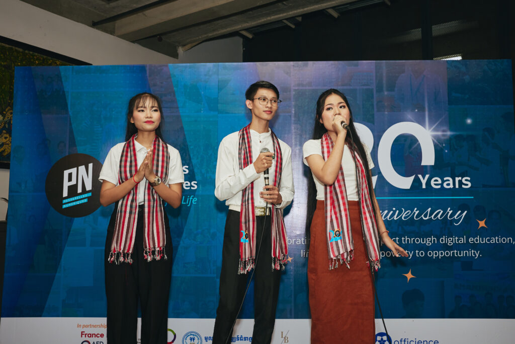 Hybunna Hang, Country Director of PN Cambodia (PNC), welcomed guests with a reflection on the local impact: “For 20 years, PNC has empowered disadvantaged youth by providing access to education, digital skills, and confidence to reach their full potential.”